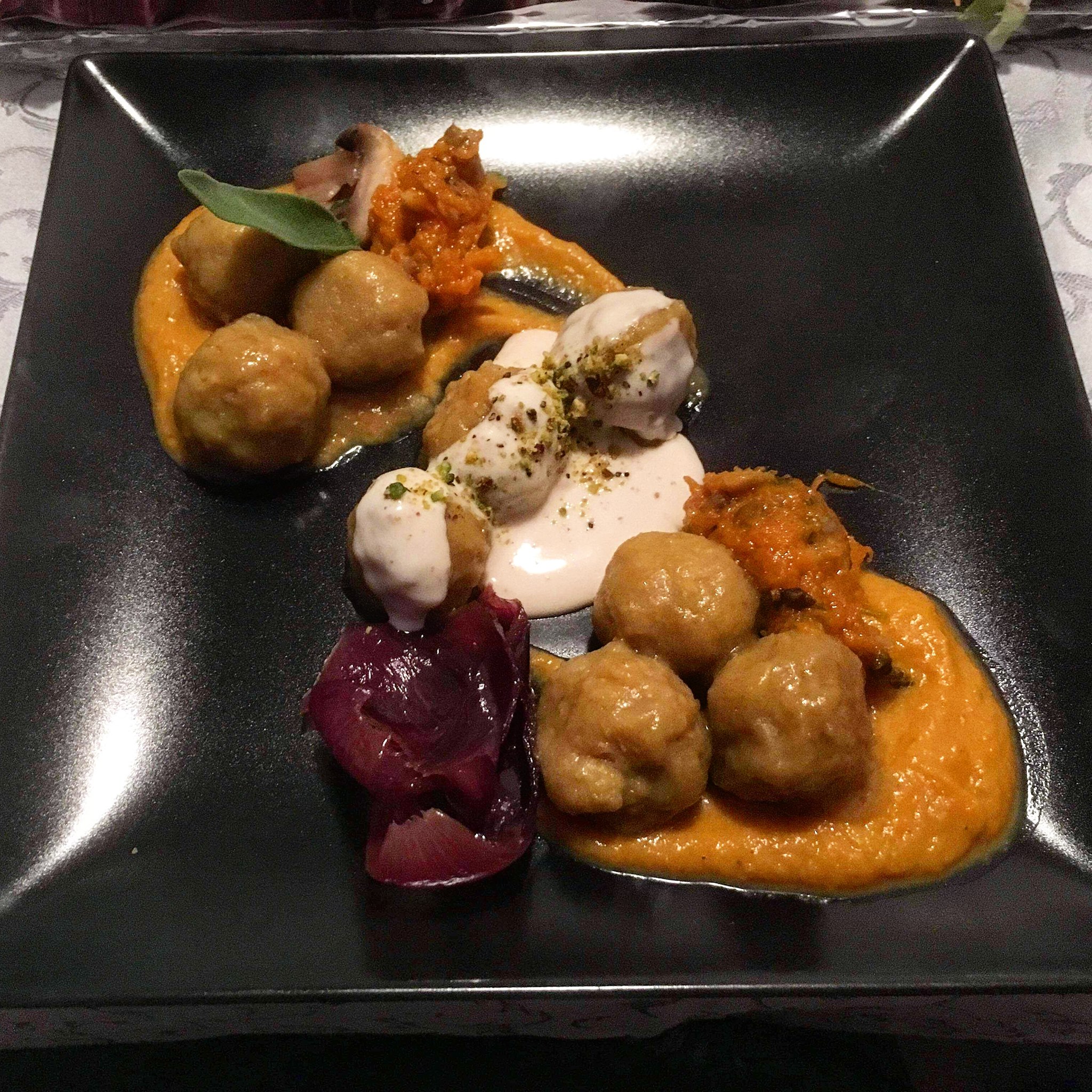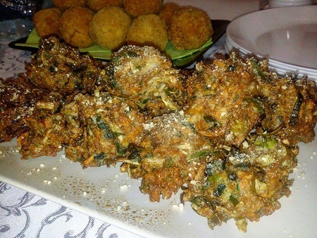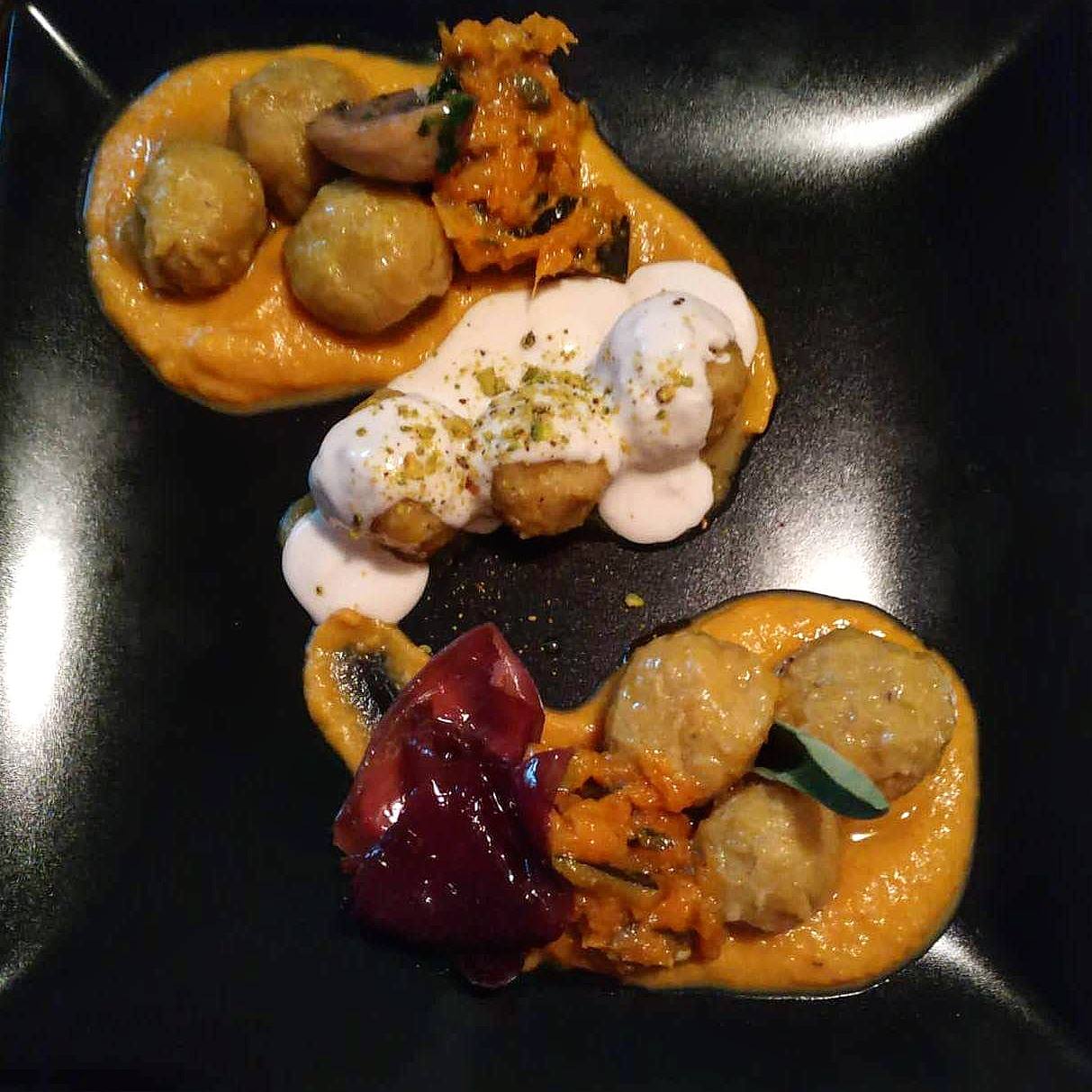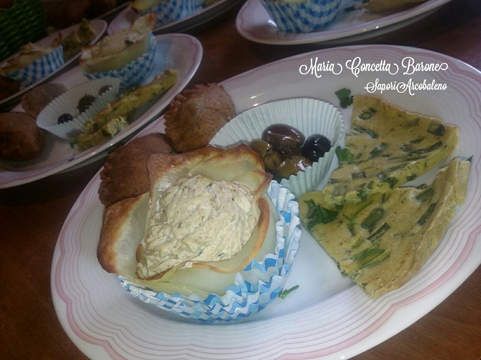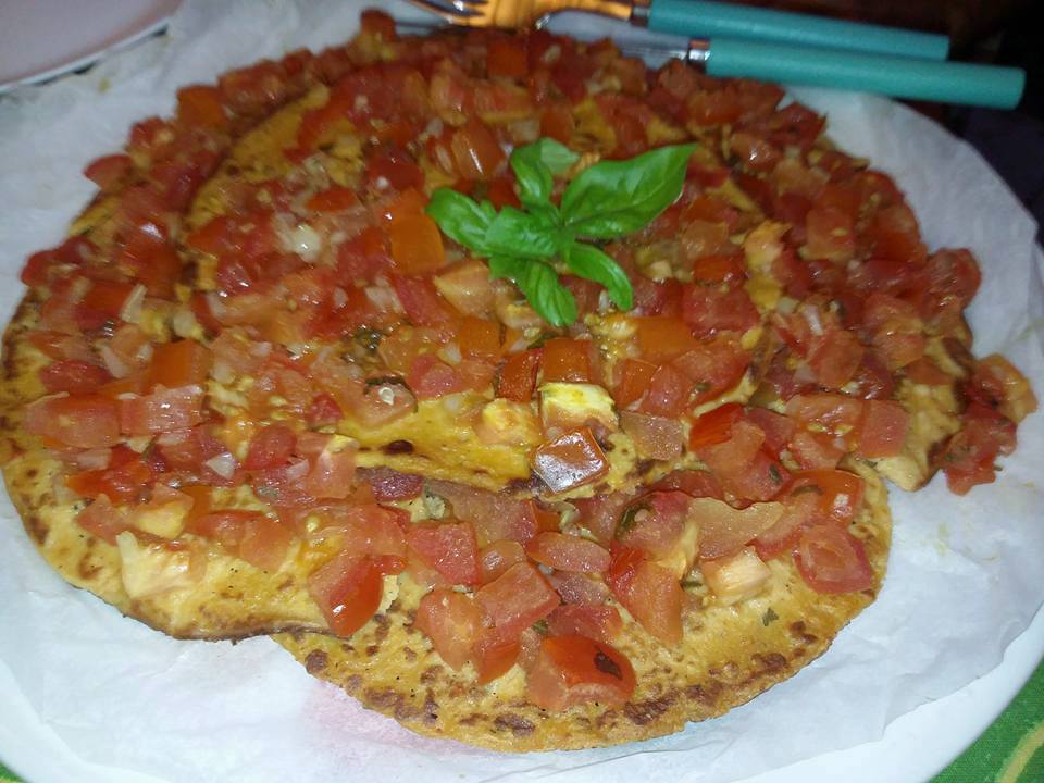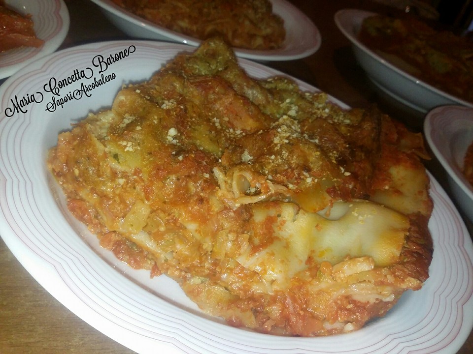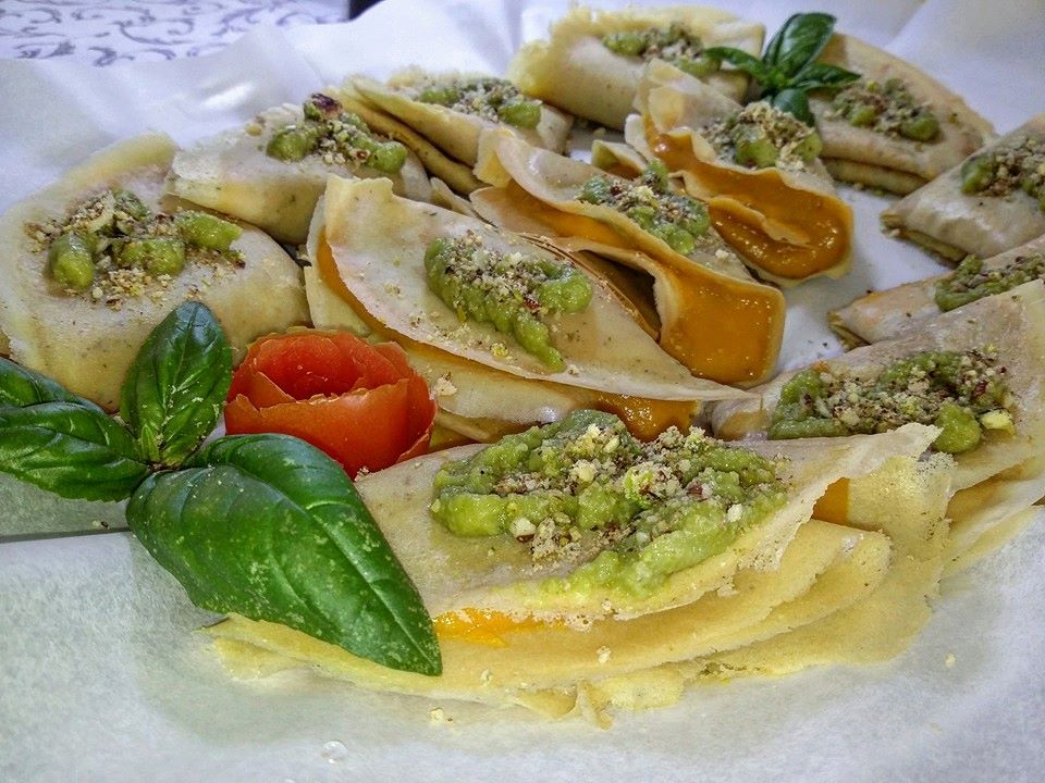- Crepe di ceci con ripieno di zucchine porri e funghi in salsina rossa