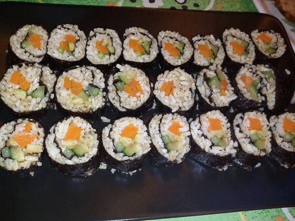 - Insalata lattuga e pomodoro arricchita da alga nori. Mais
