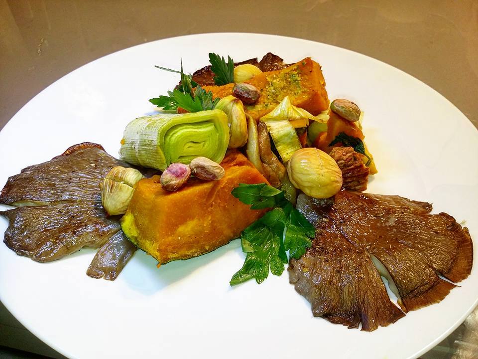 Zucca Autunnale con Porri, Castagne e Funghi Pleurotus